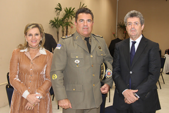 Desembargadores Clara Saboya (corregedora) e Valdir Carvalho (presidente) ladeiam o coronel da PM Vanildo Neves de Albuquerque Maranhão Neto durante solenidade que celebrou, na terça-feira (11), os 194 anos da PM-PE. Os magistrados foram agraciados com a Medalha Pernambucana do Mérito da Polícia Militar, concedida a personalidades que prestaram importantes serviços ou se destacaram no relacionamento com a corporação