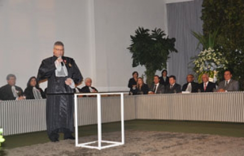 Ao agradecer aos colegas desembargadores que compõe o Pleno do TRT6, ele destacou que se tratava de uma honraria haver recebido a missão de conduzir os destinos do Tribunal no próximo biênio (2011-2013) - de forma compartilhada com a desembargadoras Maria Helena Guedes Soares de Pinho (Vice-Presidente) e Gisane Barbosa de Araújo (Corregedora) - que estava cioso da responsabilidade, que se tornava ainda maior por suceder a desembargadora Eneida Melo, cuja gestão, da qual teve orgulho de participar, foi marcada pelo diálogo.