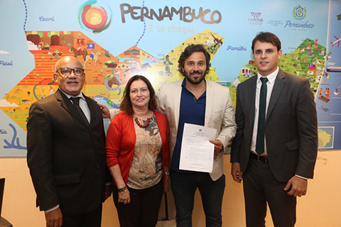 Na segunda-feira (1º), o gestor regional do Programa Trabalho Seguro em Pernambuco, o desembargador do Tribunal Regional do Trabalho da 6ª Região (TRT-PE) Fábio Farias, esteve na Secretaria de Turismo de Pernambuco. Ele foi, juntamente com os auditores fiscais do trabalho Simone Holmes e Edson Cantarelli Guerra, entregar ao secretário Rodrigo Novaes ofício solicitando que a iluminação do Centro de Convenções do estado fique na cor verde durante o mês de Abril.