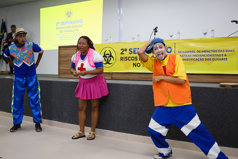 Na abertura do seminário, na manhã desta terça-feira (17), houve apresentação cultural com três integrantes do grupo de teatro Consultório de Rua, da Prefeitura do Recife, que fez um esquete sobre a temática do evento, explicando, em cenas humorísticas rápidas, o conceito de risco biológico, como identificar e controlar esse risco, formas de exposição, vias de transmissão e formas de prevenção.