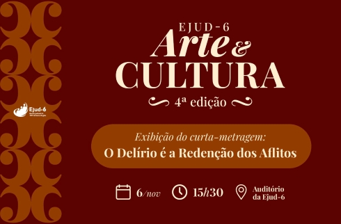Apresentando sua quarta edição, o Ejud-6 Arte & Cultura exibe o curta-metragem O Delírio é a Redenção dos Aflitos, de Fellipe Fernandes, que foi assistente de direção de Kleber Mendonça Filho em Aquarius. A projeção acontece