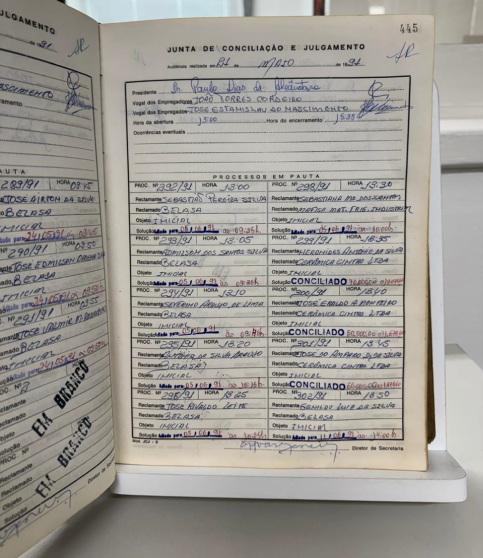 Na oportunidade da correição, a juíza titular apresentou ao corregedor o Livro 01 de Audiências da Vara de Belo Jardim, encontrado recentemente entre os documentos antigos guardados na Vara, onde consta, a partir das fls. 460, diversos registros de audiências realizadas pelo desembargador Paulo Alcantara, da época que foi magistrado naquela Vara. A magistrada deixou o referido livro em exibição na Secretaria da Unidade, juntamente com obras de arte de artistas da cidade, para que as pessoas possam conhecer a história daquele lugar.