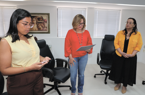 O documento de posse foi lido pela diretora da Secretaria de Gestão de Pessoas, Márcia Fernanda Gomes de Menezes. Na sequência, a recém-empossada prestou juramento e assinou o termo de posse e compromisso.