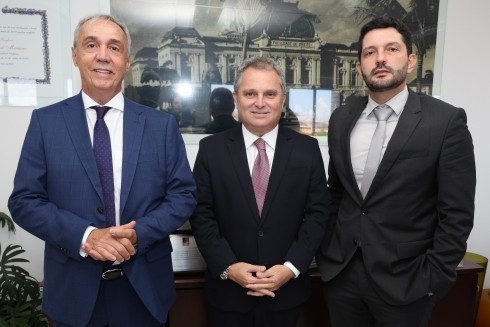 O vice-presidente do Tribunal Regional do Trabalho da 6ª Região, desembargador Eduardo Pugliesi, recebeu a visita institucional do presidente da Federação Pernambucana de Futebol, Evandro Carvalho, e do membro do Tribunal de Justiça Desportiva de Pernambuco, Pedro Corrêa Gondim Filho. A reunião teve por objetivo o planejamento de ações conjuntas a serem realizadas durante a Semana Nacional da Conciliação Trabalhista 2026, que será realizada de 25 a 29 de maio.