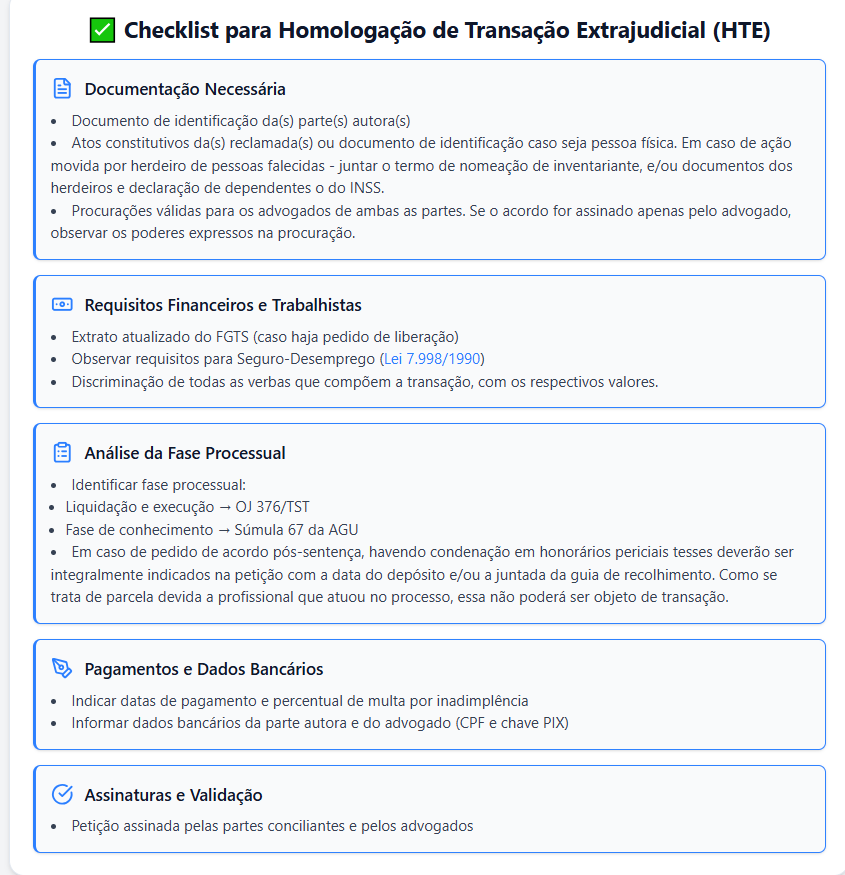 Confira o Checklist para Homologação de Transação Extrajudicial (HTE)